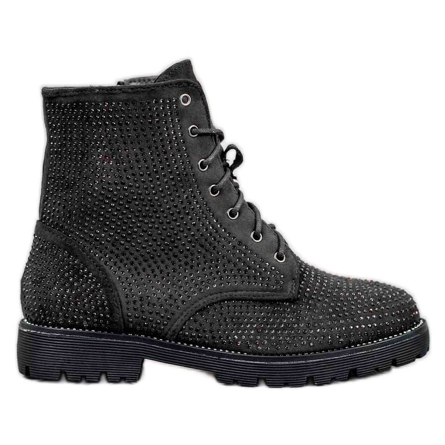 Stövlarna är utrustade med praktisk snörning och sidodragkedja, vilket gör dem lätta att ta av och på. Dessutom lockar känsliga kristaller som dekorerar ovandelen uppmärksamhet och ger lite glans till helheten, vilket gör dem till ett utmärkt val för olika tillfällen.