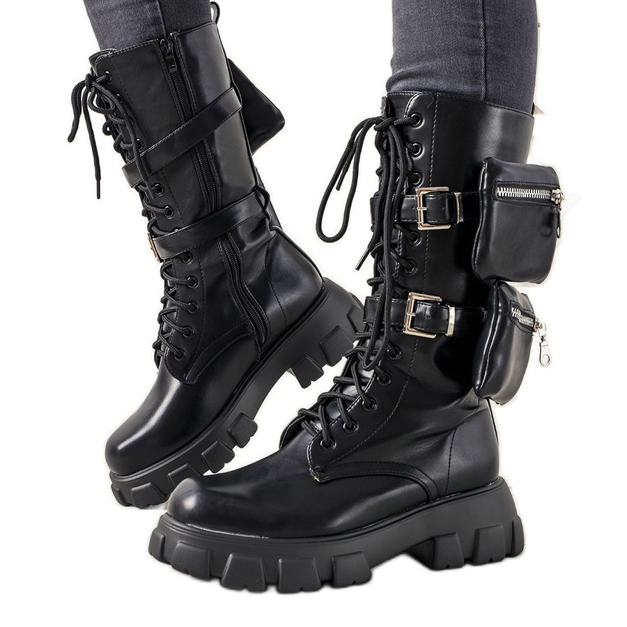 Svarta Apolline stövletter med fickor är ett måste för varje fashionabel kvinna i höst! Tillverkade av högkvalitativt ekologiskt läder, dessa ankelboots kombinerar original design och funktionalitet. Dekorerade med två praktiska remmar med påsar, är de ett idealiskt sätt att förvara småsaker, vilket gör dem inte bara till ett snyggt utan också ett praktiskt val.
