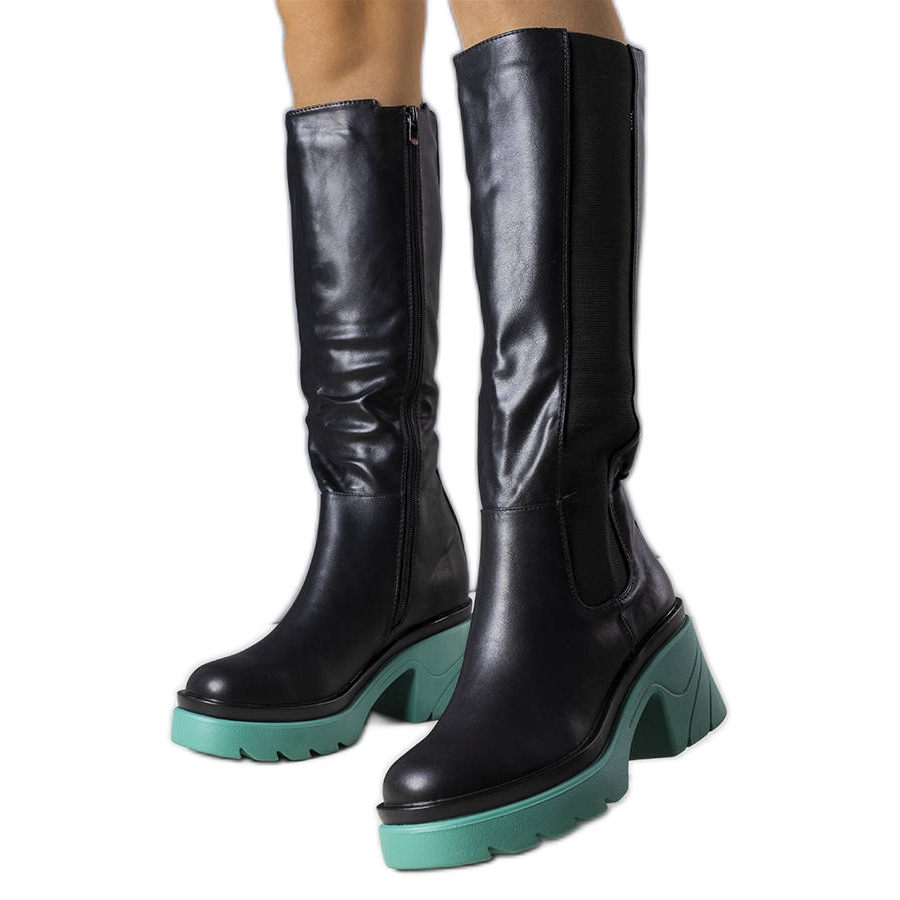 Information: Svarta stövlar med blå sula från Charla