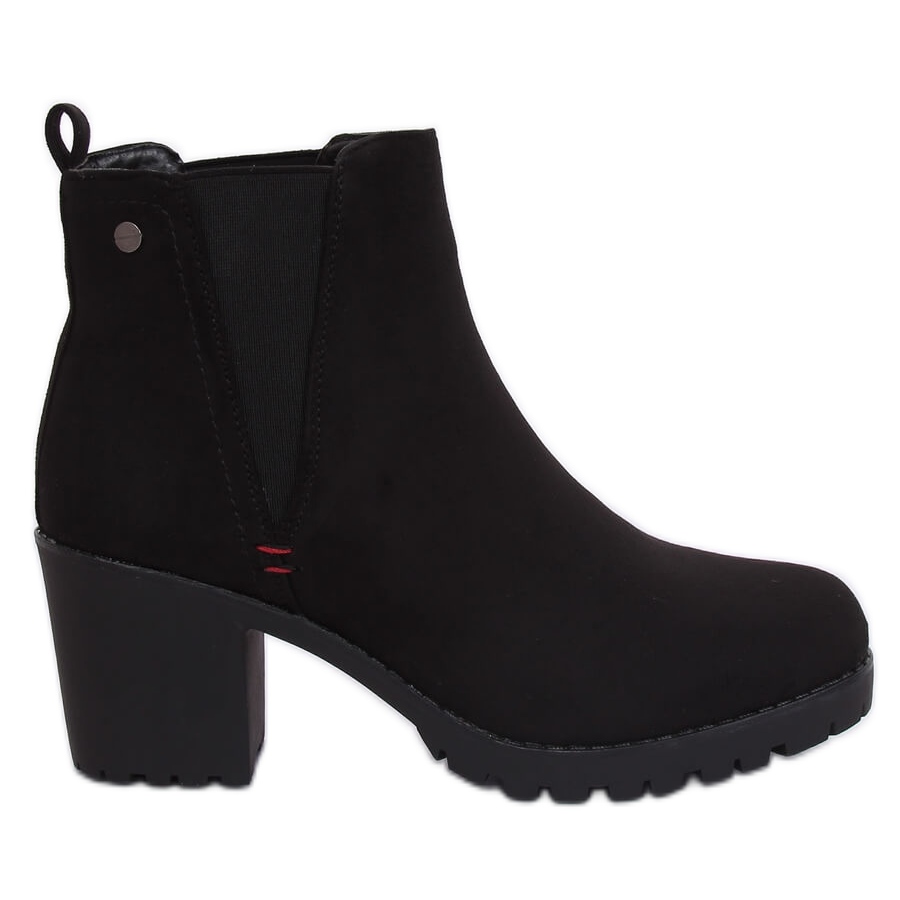 Detaljer: Svarta stövlar med breda klackar W373 Svart