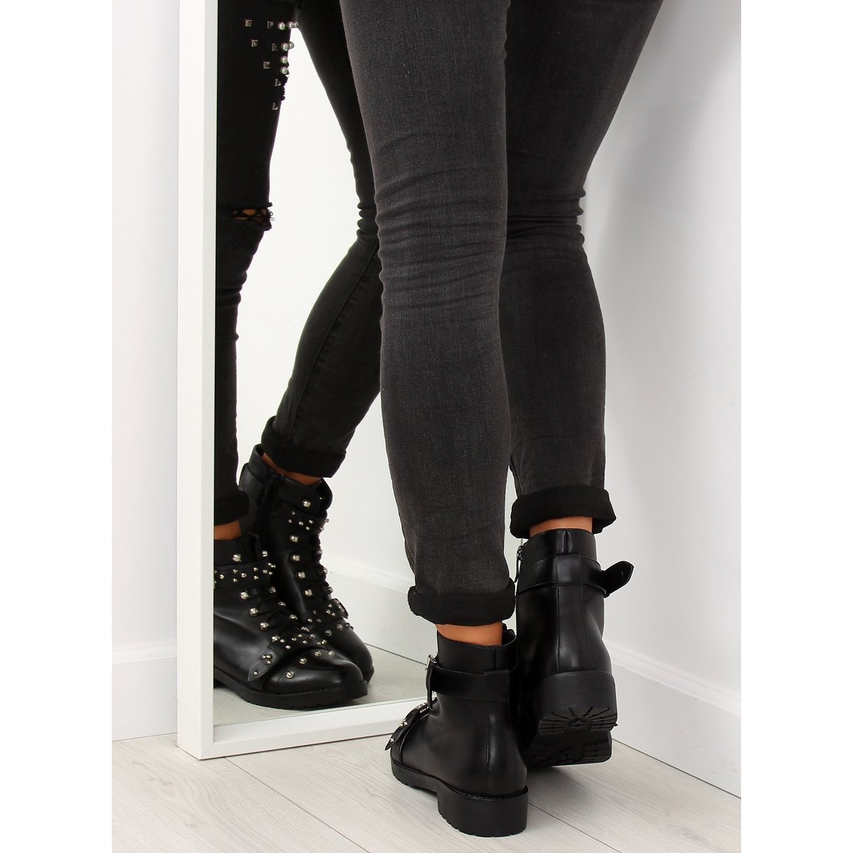 Vi presenterar ankelstövlar för kvinnor med dubbar A3309 Black - det perfekta valet för älskare av rockstil och fashionabla, djärva accessoarer. Dessa extraordinära stövlar kombinerar modernitet och klassisk stil, vilket gör dem till ett perfekt komplement till varje garderob.