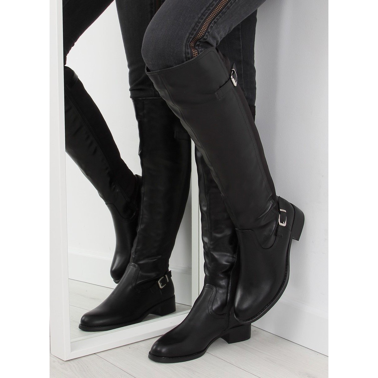 Vi erbjuder eleganta svarta stövlar för kvinnor som kombinerar modern design och komfort att bära. Dessa plattklackade stövlar kännetecknas av smala tår, vilket gör att de ser extremt graciösa ut på benet. Två remmar med spännen ger karaktär, och den flexibla ovandelen anpassar sig perfekt till formen på benen, vilket säkerställer komfort hela dagen.