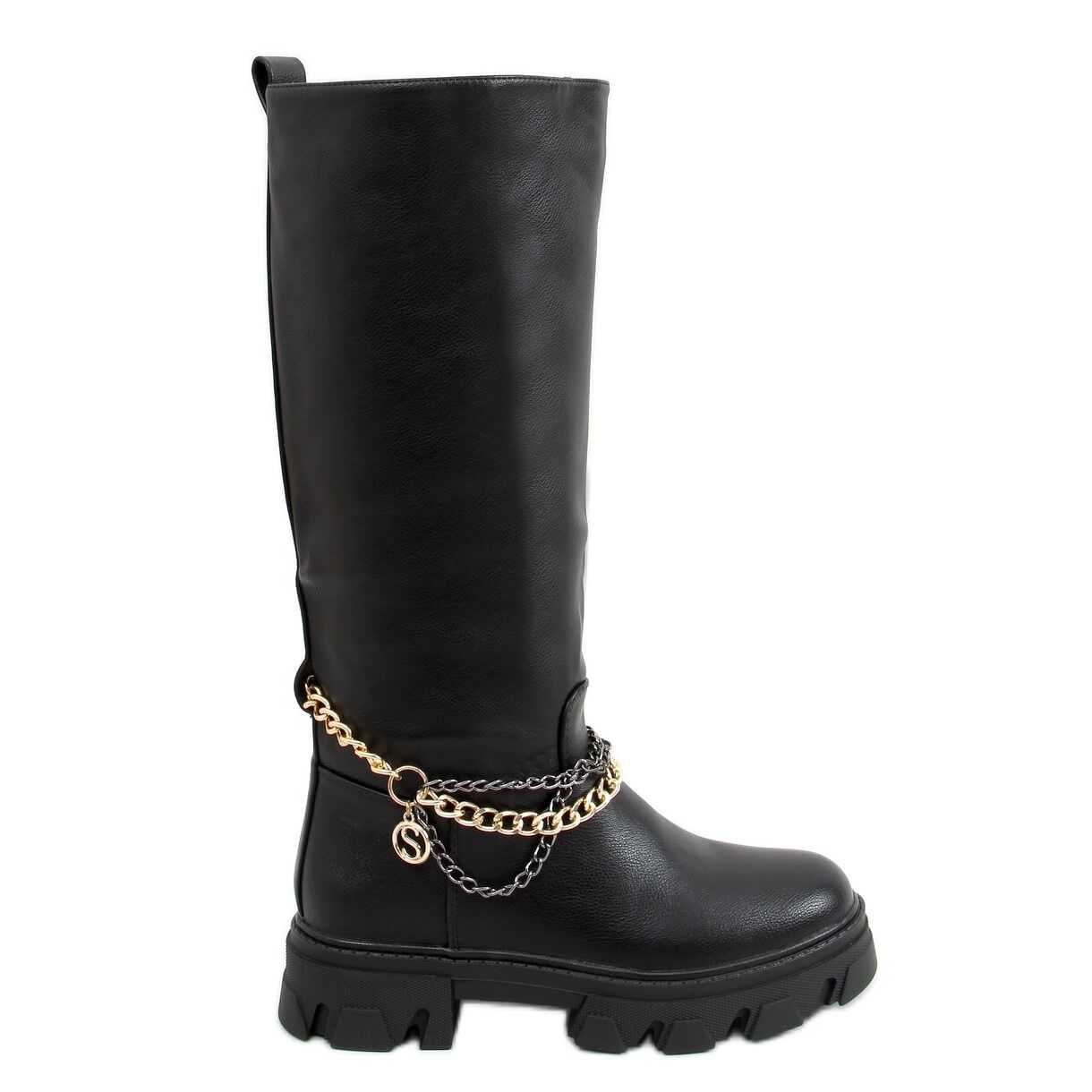 Detaljer: Svarta stövlar med kedjor NC1228 Svart