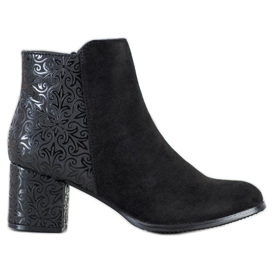 Upptäck oöverträffad stil och komfort med svartmönstrade ankelboots från J. Star! Dessa eleganta skor, perfekta för moderna kvinnor, kombinerar avslappnad design med subtil elegans, vilket gör dem perfekta för olika tillfällen - både varje dag och under ceremonier eller kvällsevenemang.