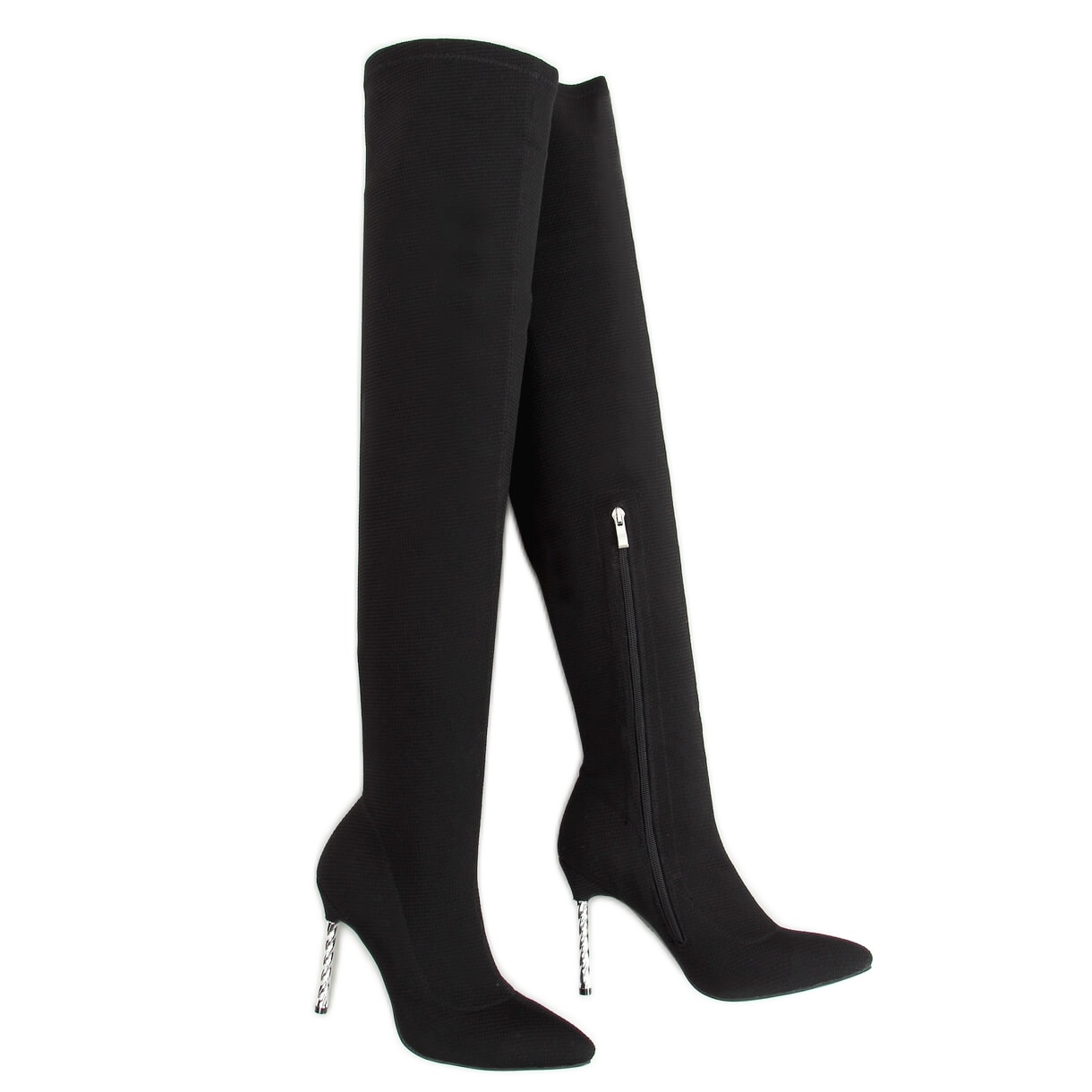Information: Svarta stövlar över knäet på en högklackad strumpa TM032 Svart