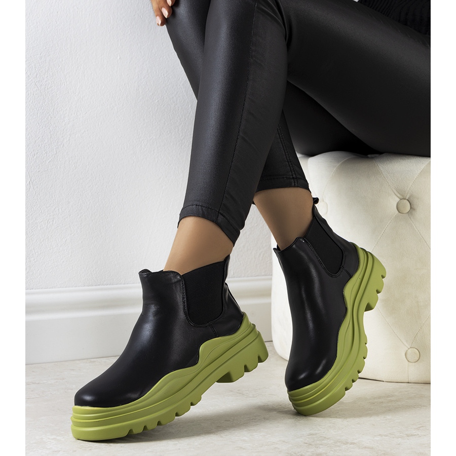 Inna marka Svarta stövlar på den gröna Tausel-plattformen