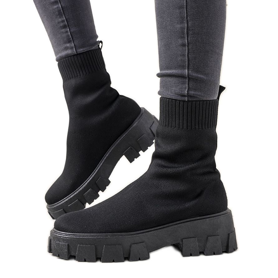 Randy svarta ankelboots med tjock sula är ett absolut måste den här säsongen! deras unika sockdesign, gjord av högkvalitativt, flexibelt material, anpassar sig perfekt till foten och erbjuder komfort att bära hela dagen.
