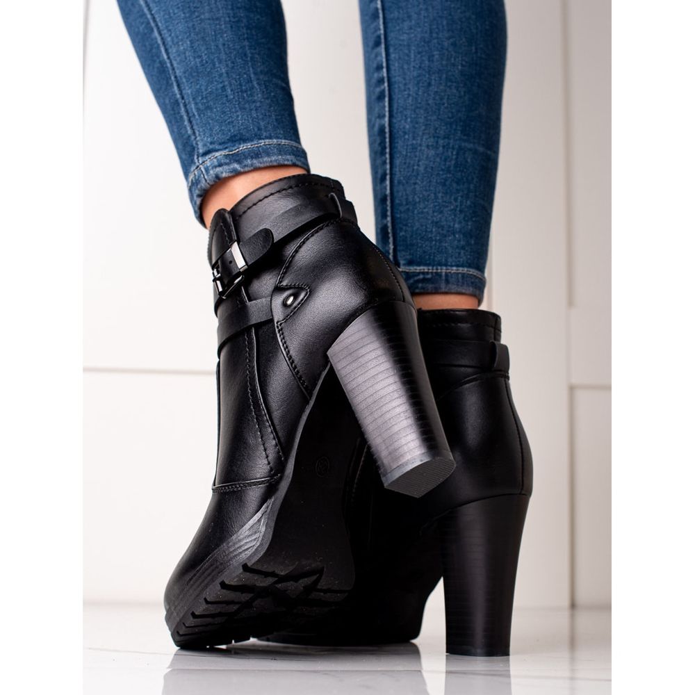 Härliga svarta högklackade ankelboots är ett perfekt val för kvinnor som vill kombinera elegans med komfort. Tillverkade av högkvalitativt ekologiskt läder, dessa unika skor är i linje med de senaste modetrenderna, samtidigt som de erbjuder komfort att bära.