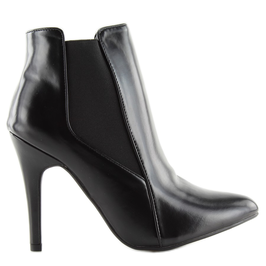 Upptäck elegans och unik stil med blanka svarta stilettstövlar 9095-43A. Dessa unika ankelstövlar för kvinnor kombinerar modern design och komfort att bära, perfekt för alla tillfällen. Deras smala 10,5 cm höga klack ger charm och förlänger benen, och den ömtåliga spetsen i tån gör att fötterna ser extremt graciösa ut.
