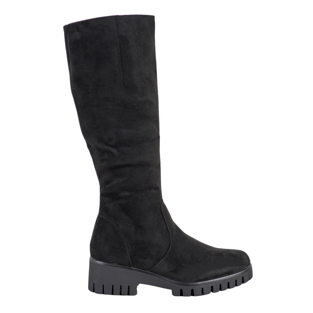 En hög upptill på knät och en rund tå framhäver deras klassiska snitt. Plastsulan med slitbana ger utmärkt grepp, och den 2 cm höga plattformen och 5 cm hälen förbättrar användarkomforten ytterligare samtidigt som den ger en stilren look.