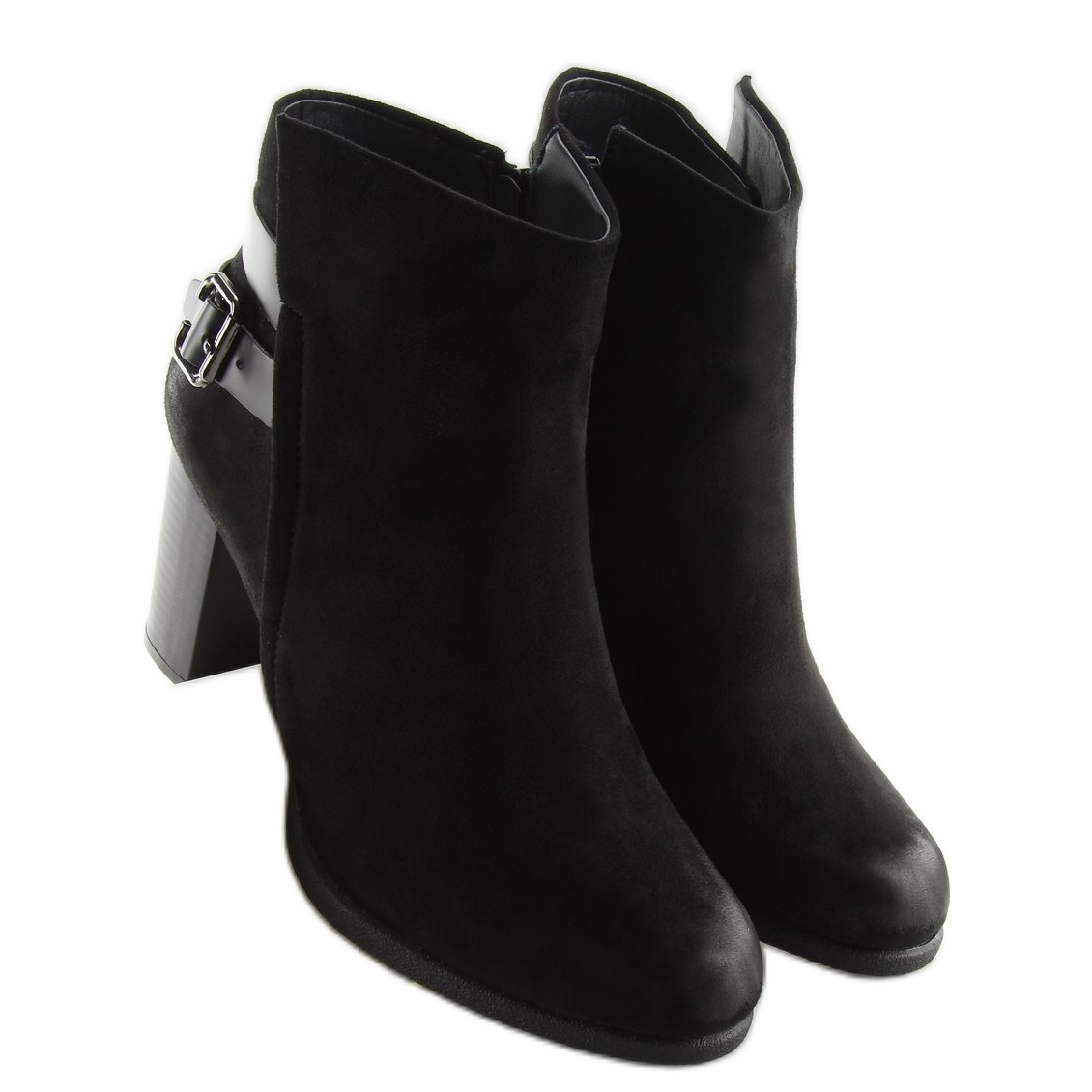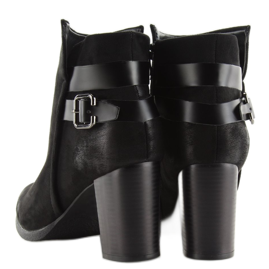 Denna modell kännetecknas av en 8 cm hög klack, som perfekt kombinerar estetik med praktiska egenskaper. Fina skavsår på tårna ger skorna lite originalitet, och två snygga remmar med ett spänne placerat på baksidan av ovandelen ger dem en modern karaktär. Tack vare den klassiska, runda tån och dragkedjan på insidan går det snabbt och smidigt att ta av och på kängorna.