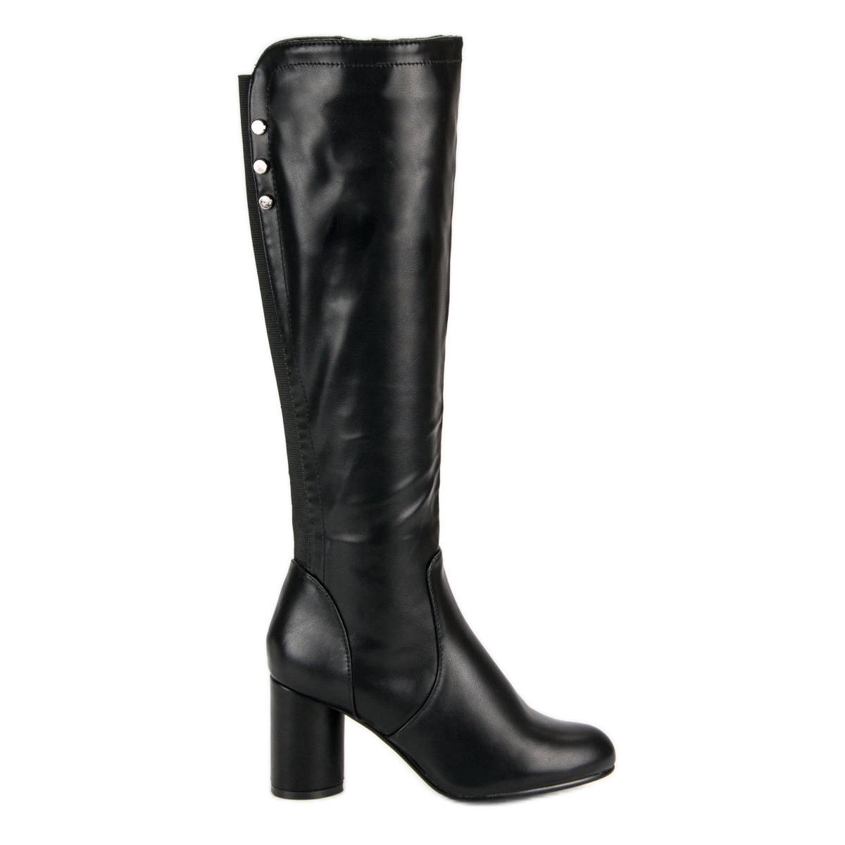 Svarta högklackade stövlar är också ett perfekt val för kallare dagar, eftersom deras klassiska design passar perfekt till varma kappor och tröjor. Det dekorativa elastiska bandet och subtila strass på baksidan ger dem en unik karaktär, vilket gör dem ännu mer attraktiva.