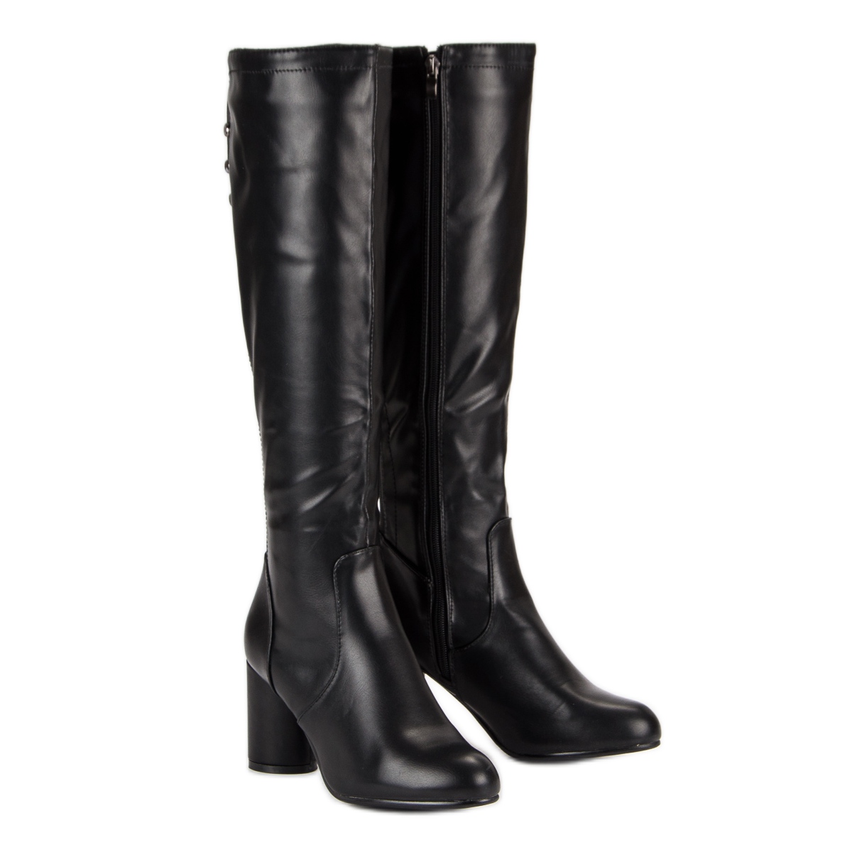 Svarta högklackade stövlar är den perfekta kombinationen av elegans och komfort, som säkert kommer att bli ett favoritelement i varje kvinnas garderob. Tillverkade av konstläder av högsta kvalitet, dessa skor är inte bara snygga utan också miljövänliga. Klassisk svart gör att de matchar många olika stilar, både vardagliga och mer formella.