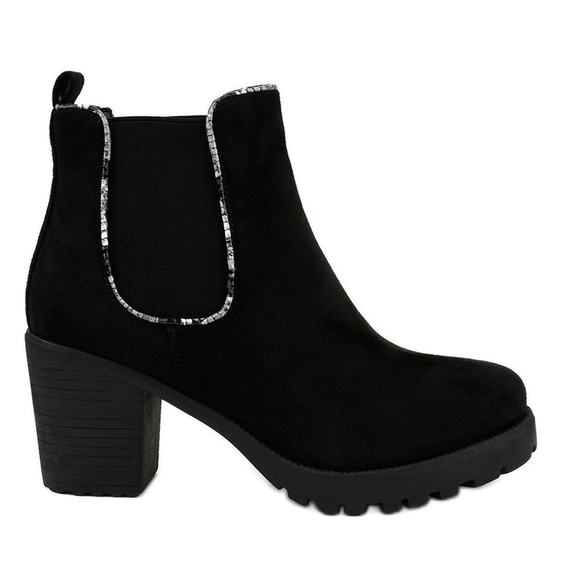 Vi presenterar svarta högklackade ankelboots med ett M10-7 elastiskt band, som är ett perfekt förslag för varje fashionabel kvinna. Dessa eleganta skor är gjorda av miljövänligt mockaskinn och ser inte bara snygga ut utan är också miljövänliga.
