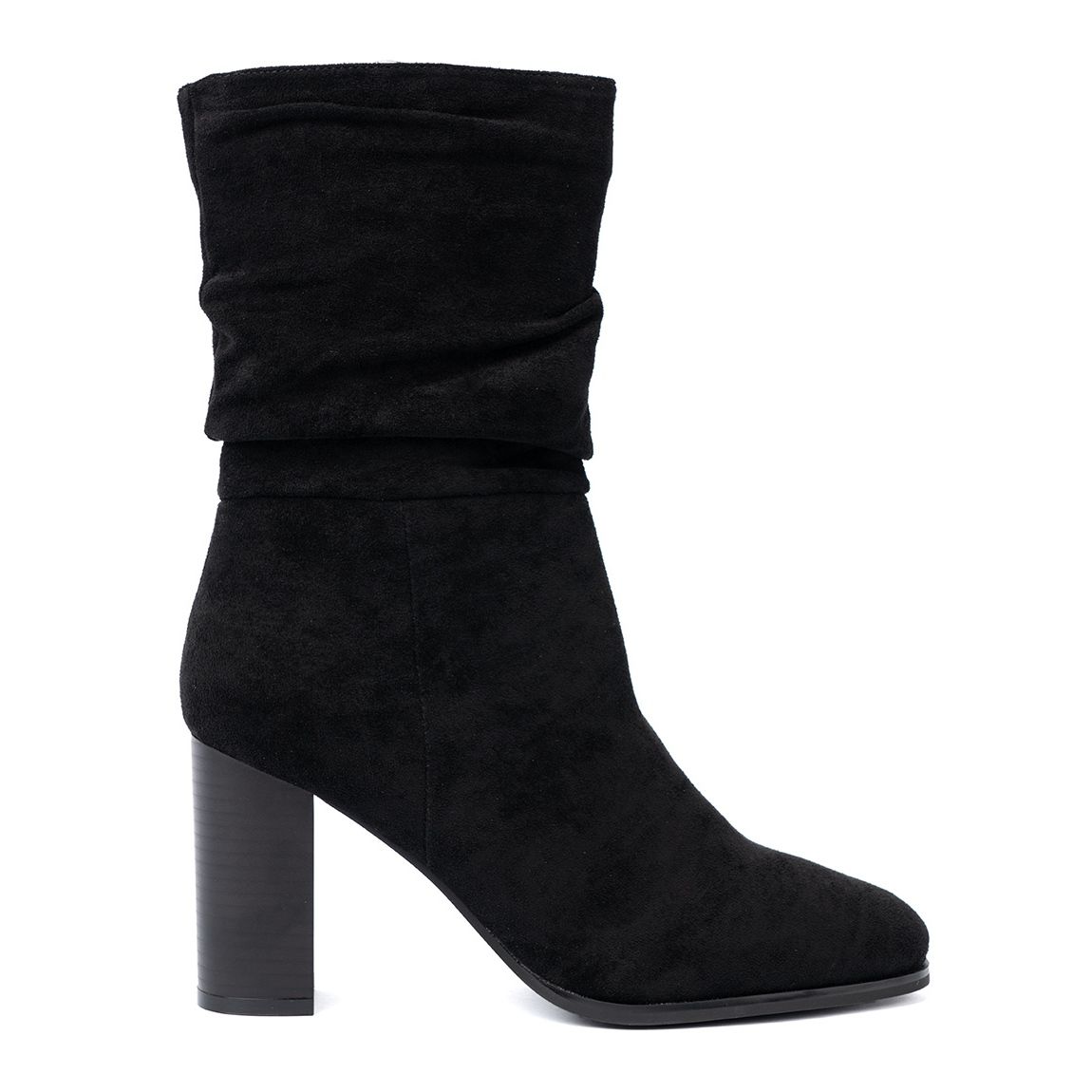 Shelvt Shelvt Svarta stövlar på stolpen med en skrynklig övre