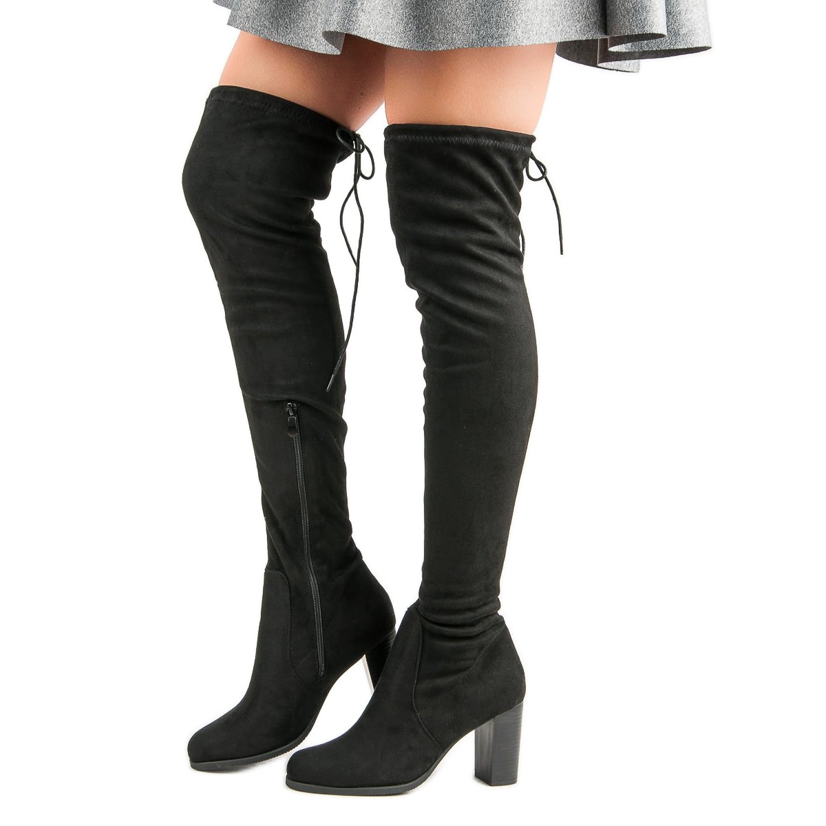 Stövlarna har en övre del över knäet, vilket gör dem perfekta för olika stilar, och den runda tån ger subtilitet. Tack vare glidlåset och dragkedjan går det snabbt och bekvämt att ta på och av skorna.