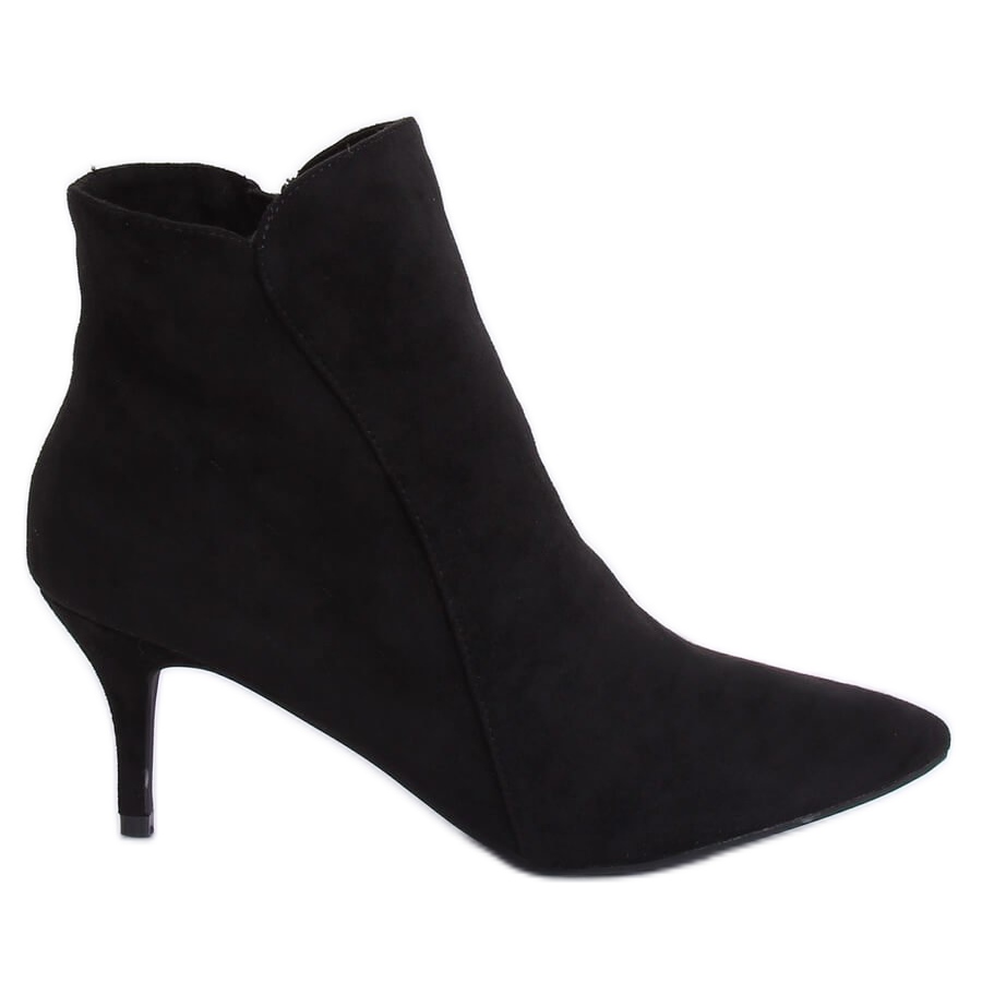 Svarta stövlar är gjorda av ekologisk mocka av högsta kvalitet och ser vackra ut på benet tack vare sin design med känsliga spetsiga tår. En låg 7 cm hög klack ger subtil elegans och gör att du bekvämt kan korsa stadens gator utan att behöva oroa dig för trötthet i fötterna.