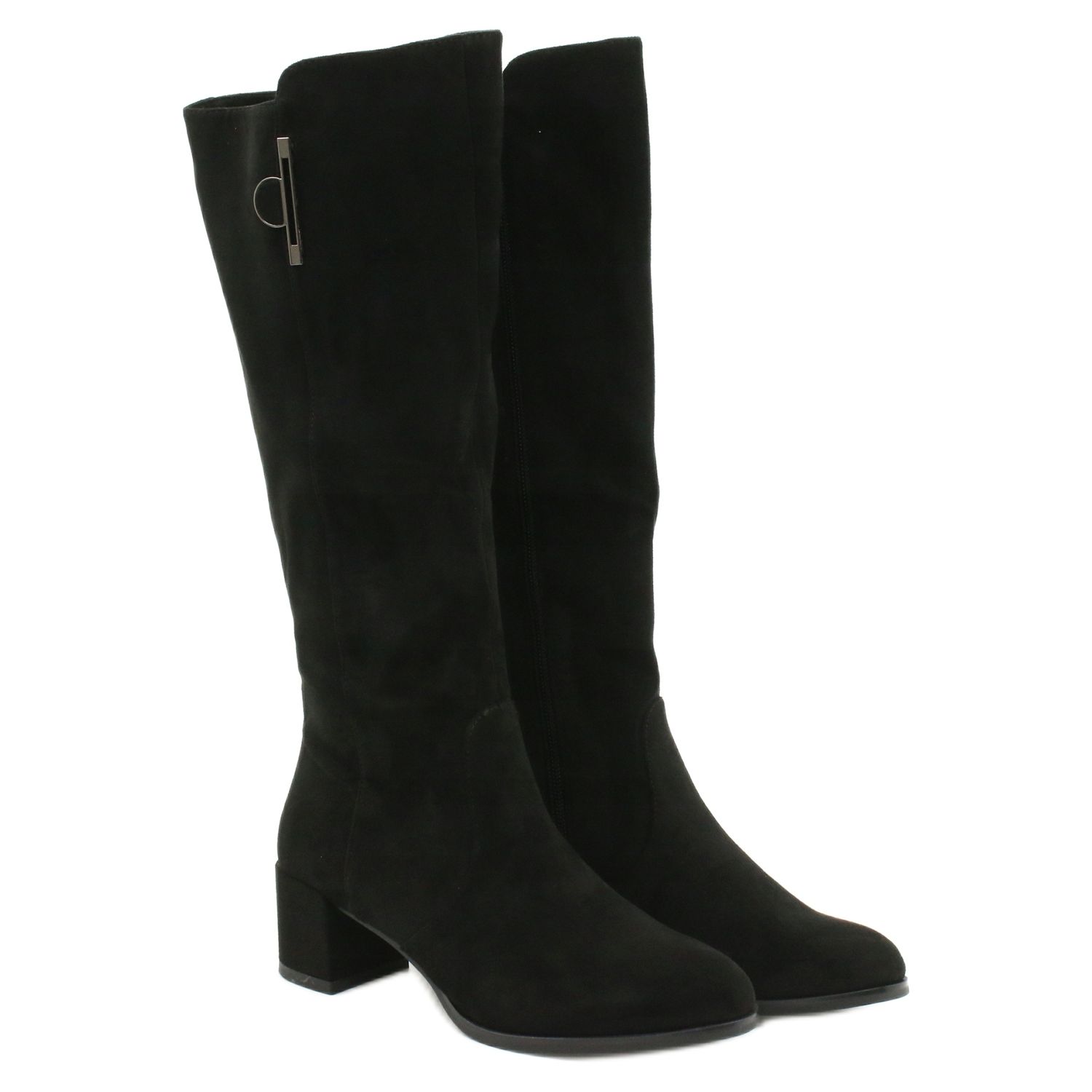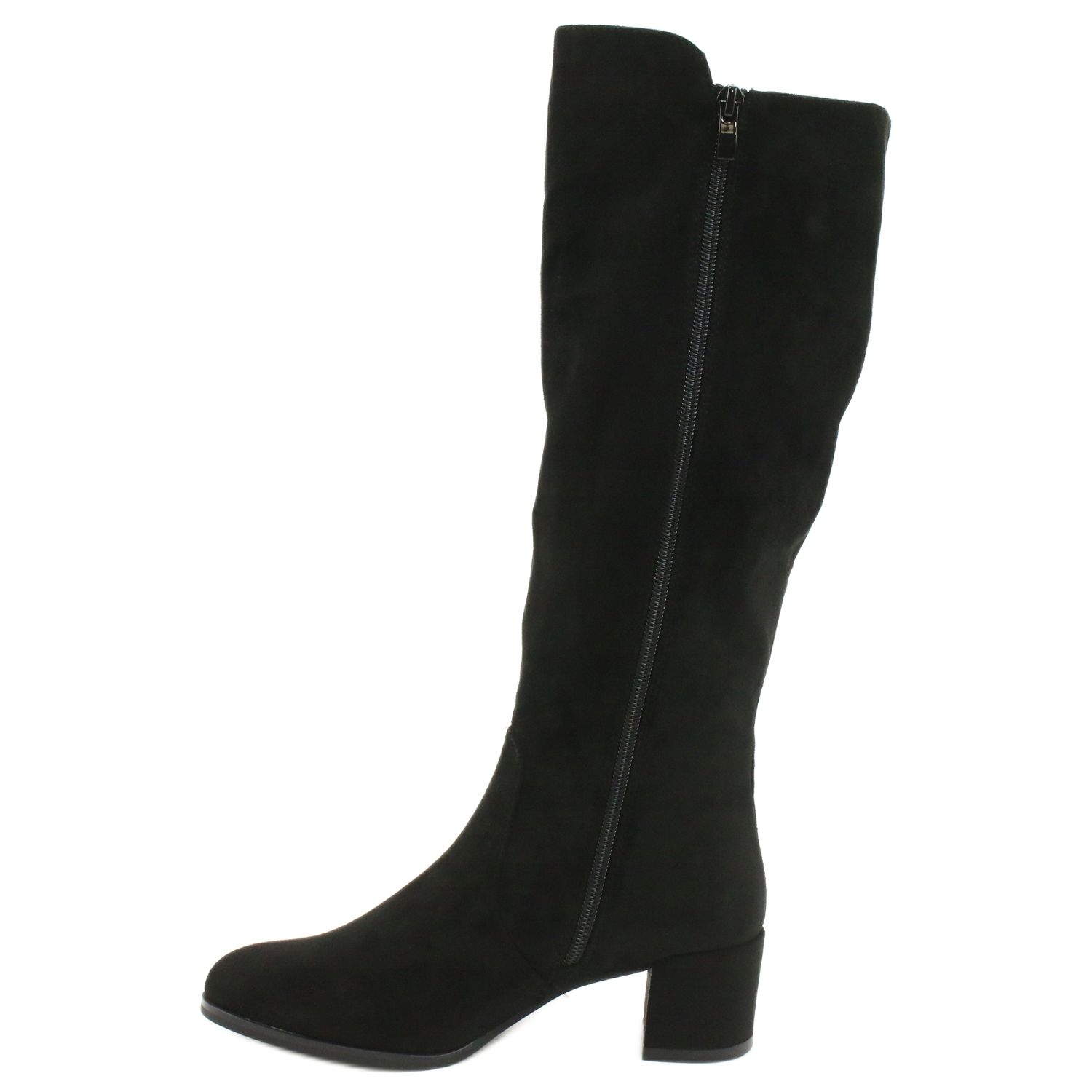 Upptäck elegans och stil med de svarta Sergio Leone KZ277-kängorna. Detta är ett perfekt val för varje fashionabel kvinna som uppskattar kombinationen av klassisk och modern stil. Stövlarna är gjorda av högkvalitativt ekologiskt mockaläder, vilket garanterar inte bara ett attraktivt utseende, utan också hållbarhet och komfort att bära.