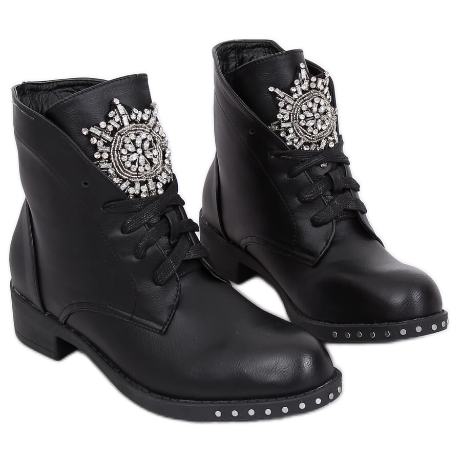Svarta bovver boots 100-902BO-1 är ett riktigt måste för varje fashionista. I kombination med dina favoritjeans eller kjol kommer de säkert att ge dig ett snyggt och originellt utseende. Tveka inte, piffa upp din garderob med detta unika element!