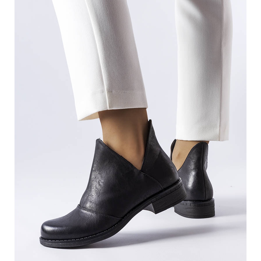 Lacombe svarta stövlar med en oregelbunden övre del - en modern klassiker som kommer att förändra all stilisering. Tillverkad av ekologiskt läder, med en universell, djup svart färg och en subtil oregelbunden övre linje, ger karaktär till både enkla, monokroma uppsättningar och mer sofistikerade utseende. En platt häl och en avrundad näsgarantikomfort dagligen, och gummisula ger bra grepp.