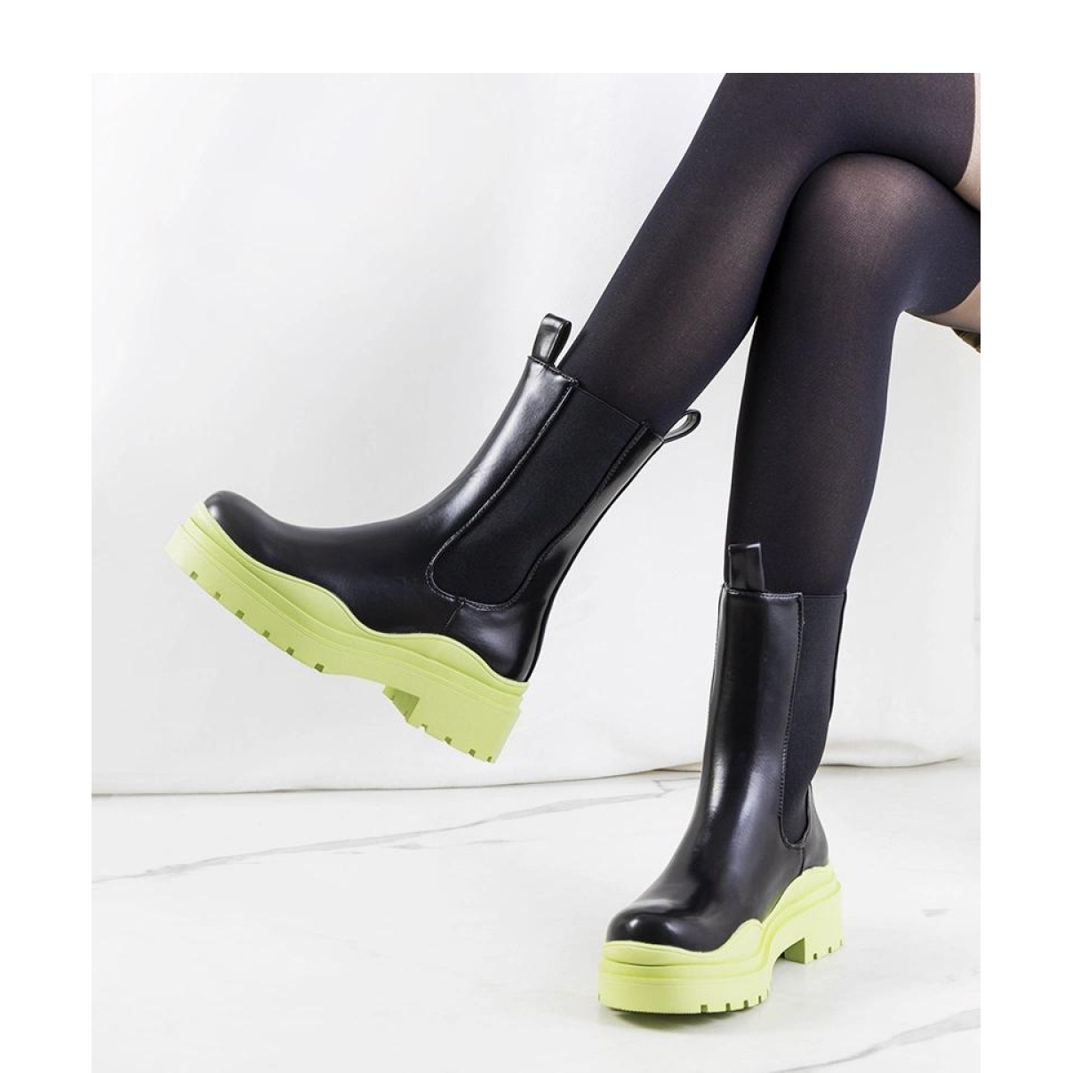 Detaljer: Svarta stövletter med grön sula Nester - Solea