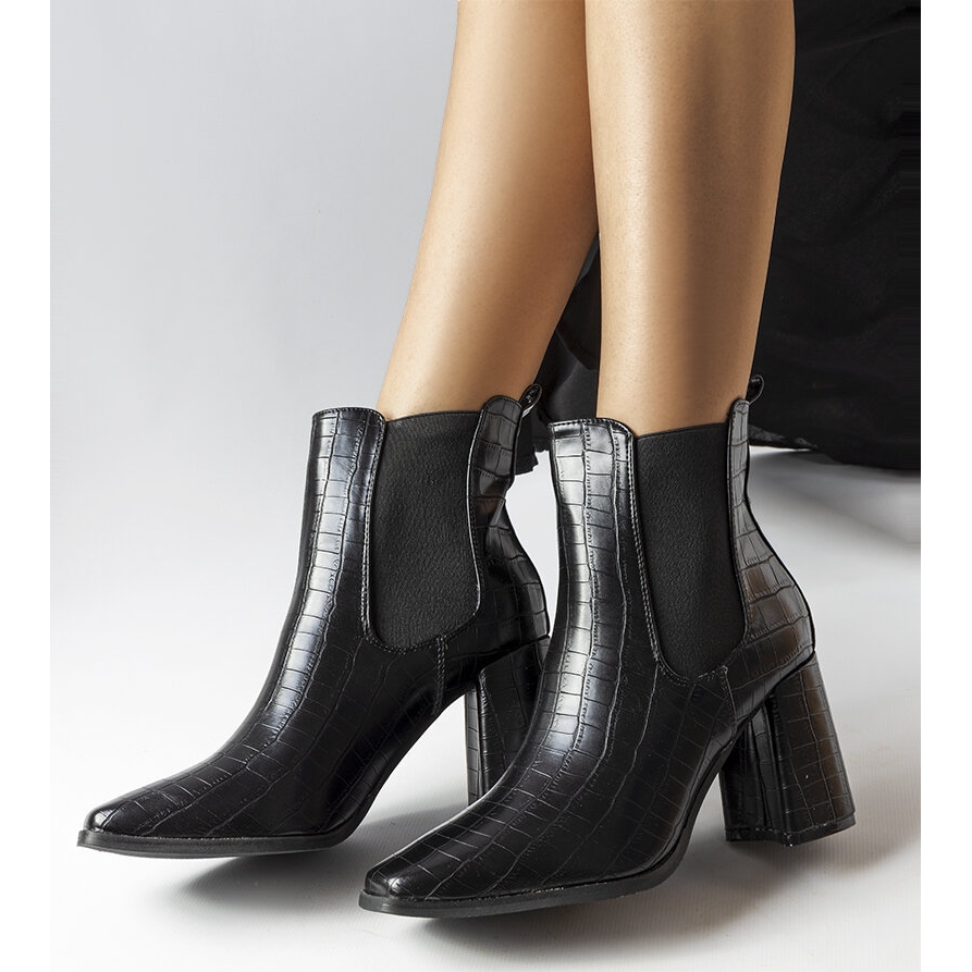 Information: Svarta stövletter med krokodilimitation från Weigall