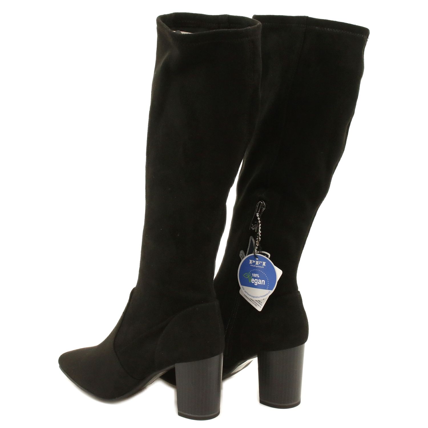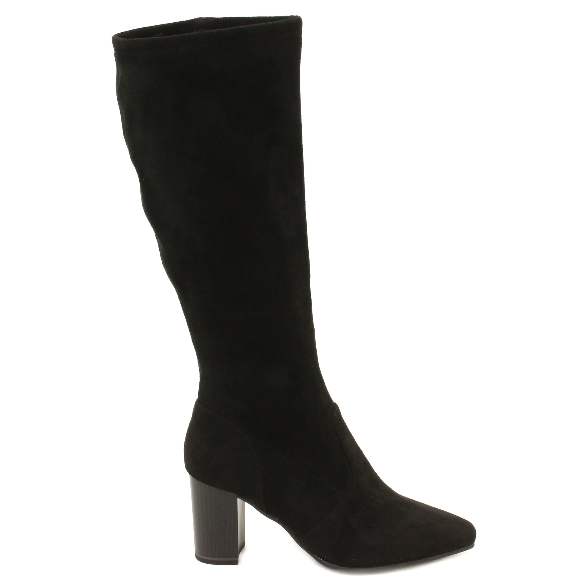 Eleganta, långa stövlar gjorda av tjockare mockmaterial med stretchegenskaper. Tack vare den känsliga inomhuselastiken anpassar de övre fint till kalven och den insatta strukturen med ett praktiskt lås gör det lättare att ta på sig. Den mjuka, textilinsula ger luftcirkulation och bär komfort, medan en klassisk 7 cm hög stolpe är subtilt bantning av figuren. Den informerade näsan ger elegans till snittet - perfekt varje dag och utgångar.