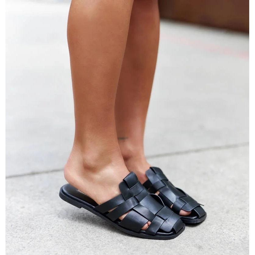 - Modell: Svarta tofflor med flätad ovandel 2522-1