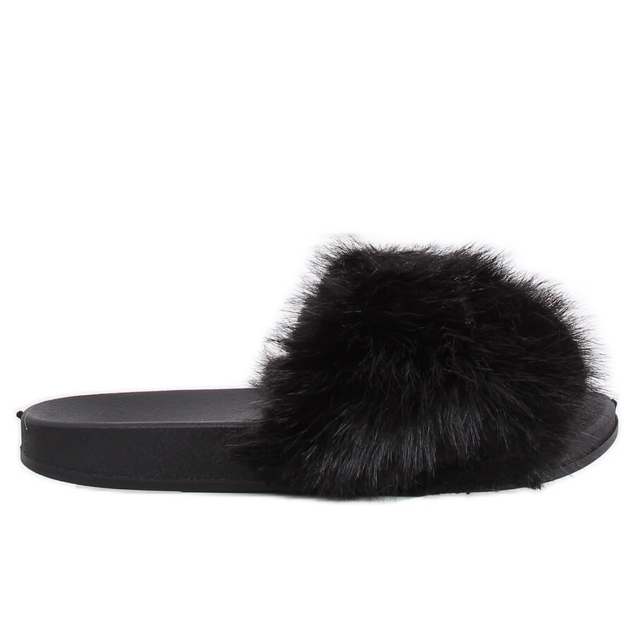 Inna marka Svarta CK107P Svarta tofflor med päls