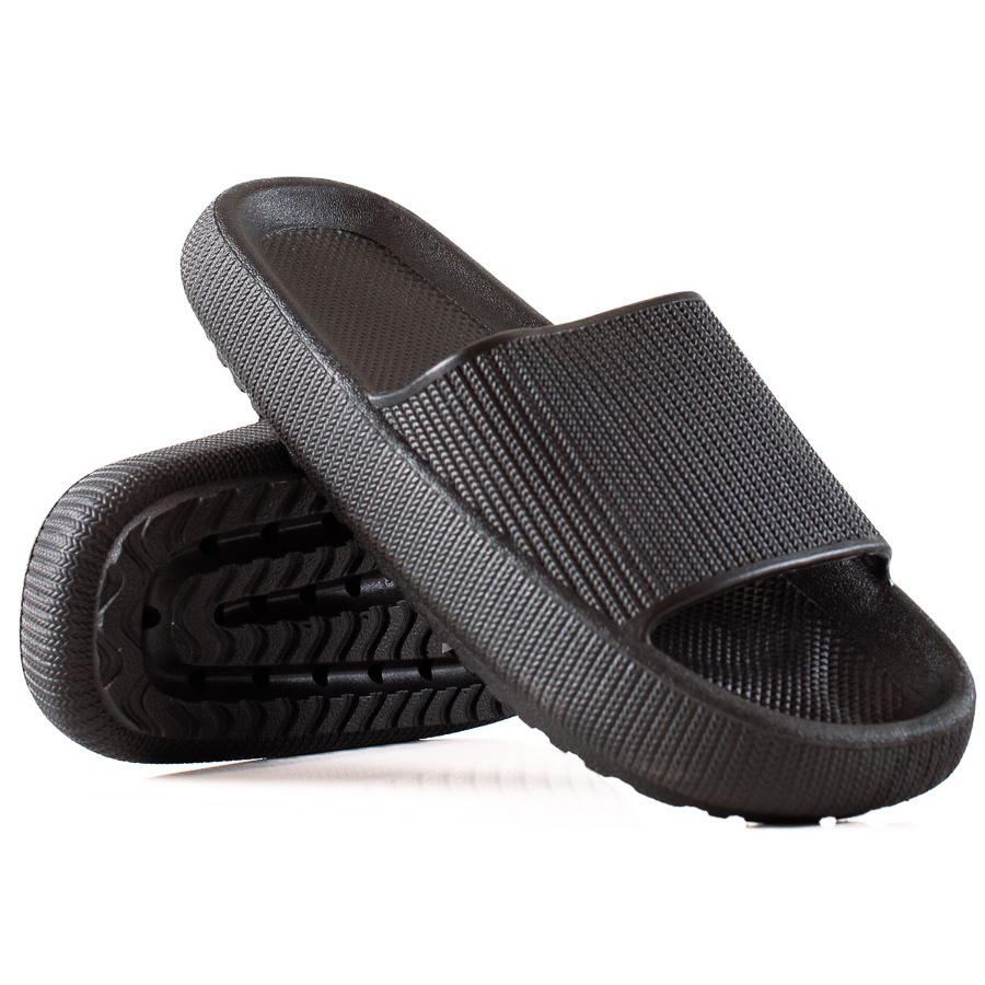 Dessa flip-flops är slip-on, vilket gör dem extremt praktiska - ta bara på dem för att njuta av komfort hela dagen. Den svarta, minimalistiska finishen passar många stilar, både för stranden och för en promenad runt staden.