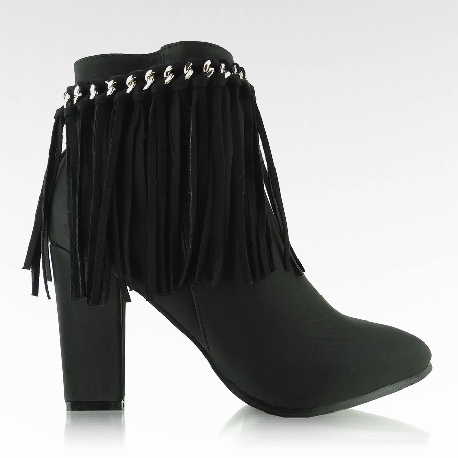 Eleganta svarta ankelboots med fransar på bred klack - 2-i-1-stil och komfort hela dagen.