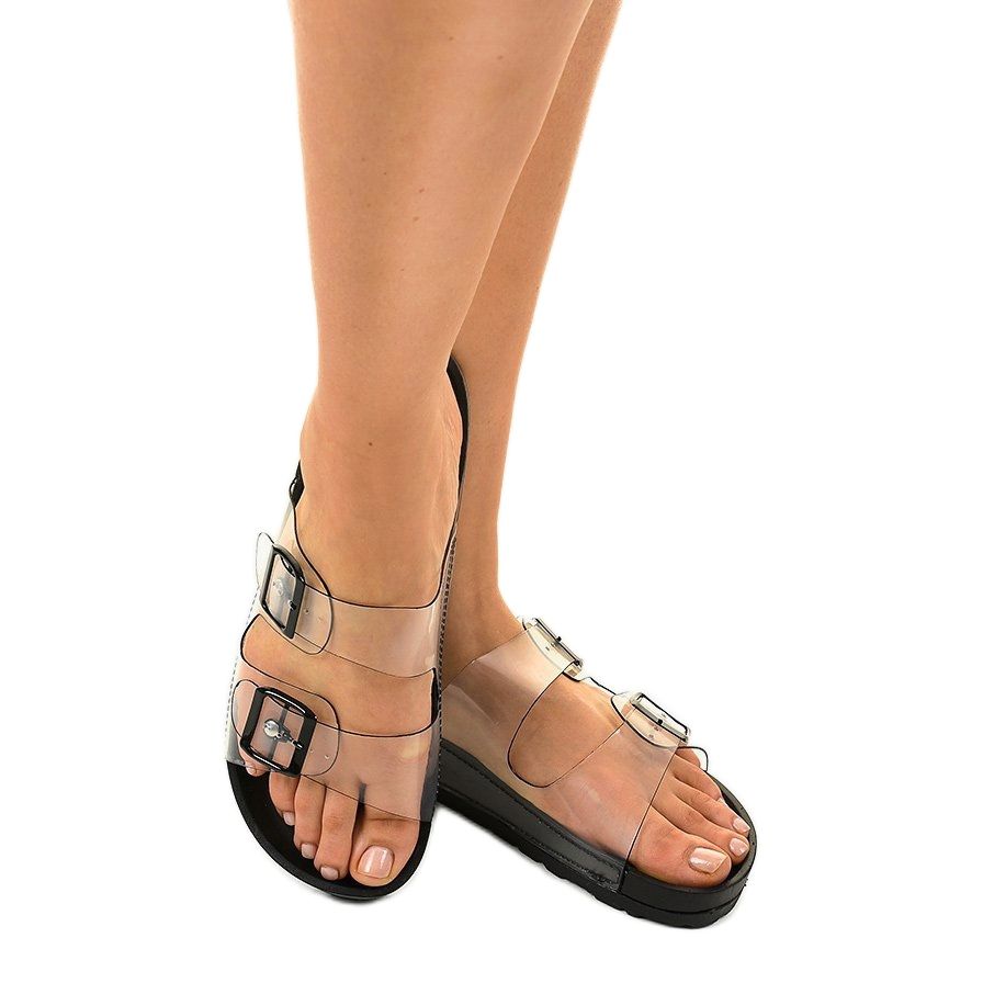 Inna marka Svarta transparenta tofflor med ett SE-9605 spänne mångfärgad