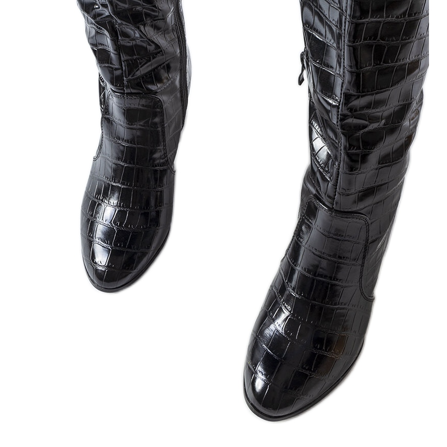 Svarta isolerade stövlar med krokodiltryck, Medhane-mönster, är ett perfekt val för höst- och vintersäsongen för varje fashionabel kvinna. Dessa eleganta stövlar är gjorda av högkvalitativt ekologiskt läder, vilket gör dem djurvänliga och passar perfekt in i dagens modetrender.