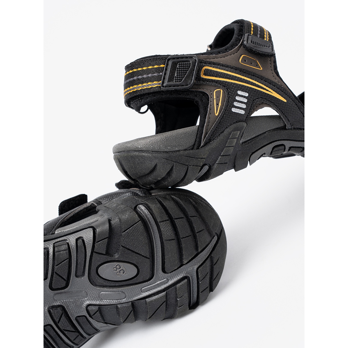 Detaljer: Shelvt Svarta vandringssandaler med gula accenter