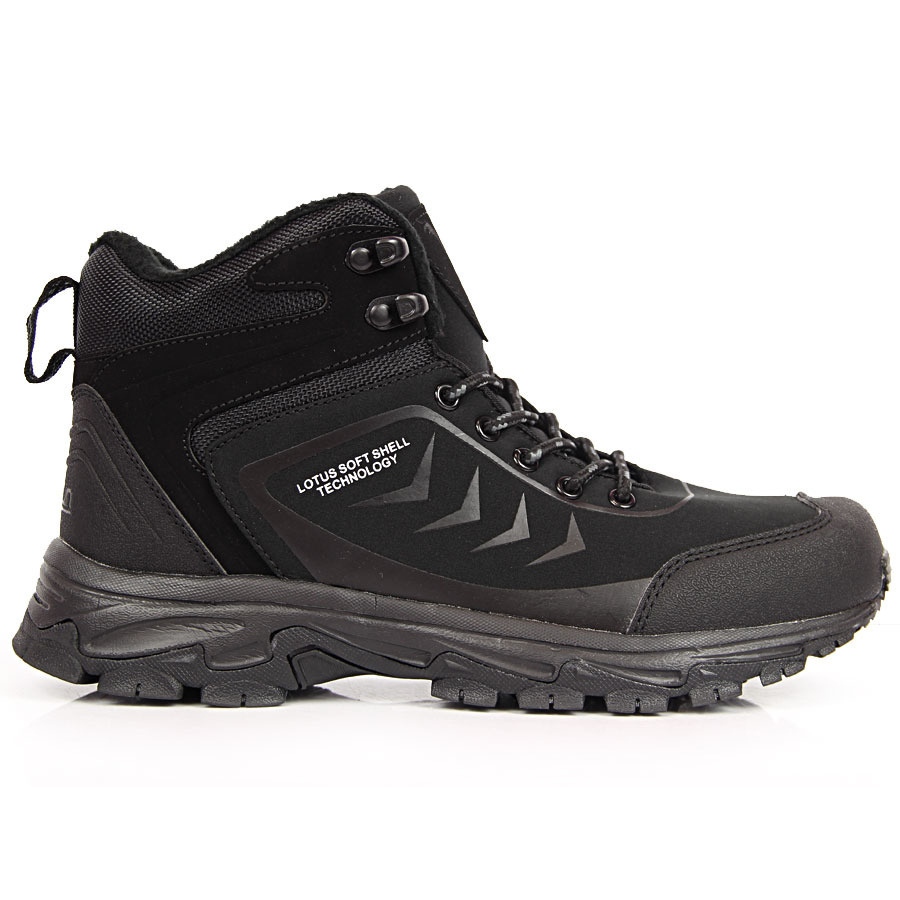 Svarta vandringsskor för män McBraun 1403 är perfekta skor för män som värdesätter komfort och skydd under vandringsresor, oavsett väderförhållanden. Tillverkade av det innovativa SOFTSHELL-materialet garanterar de ett högt skydd mot vinden och andas, vilket avsevärt ökar användarkomforten under långa vandringar. Tack vare den använda tekniken ger materialet också ökad motståndskraft mot blötläggning, reglerar luftfuktigheten och hindrar inträngning av vatten och vindpartiklar utifrån, vilket i kombination med invändig isolering gör dessa skor tillförlitliga under kallare dagar.