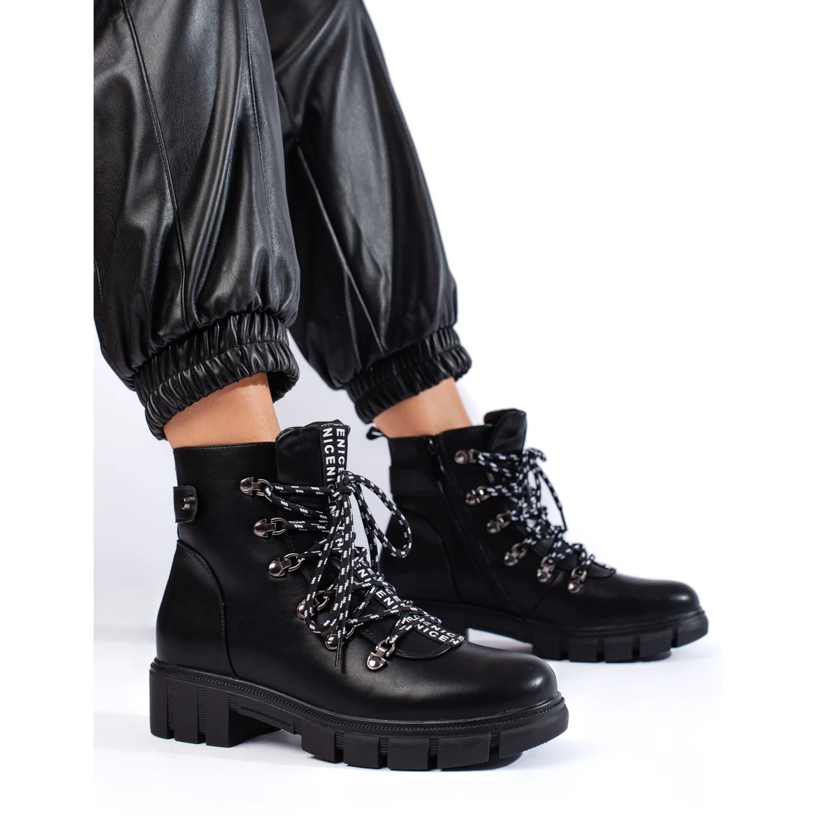 Eleganta, svarta Vinceza -arbetare kombinerar stadsstil med komfort varje dag. Tillverkad av organiskt läder, med isolering och ett trevligt "Footwear Blade" -sula, kommer de att arbeta på svalare dagar. En stabil sula med en slitbanan och ett praktiskt dragkedja och snörning garanterar komfort och ett visst steg.