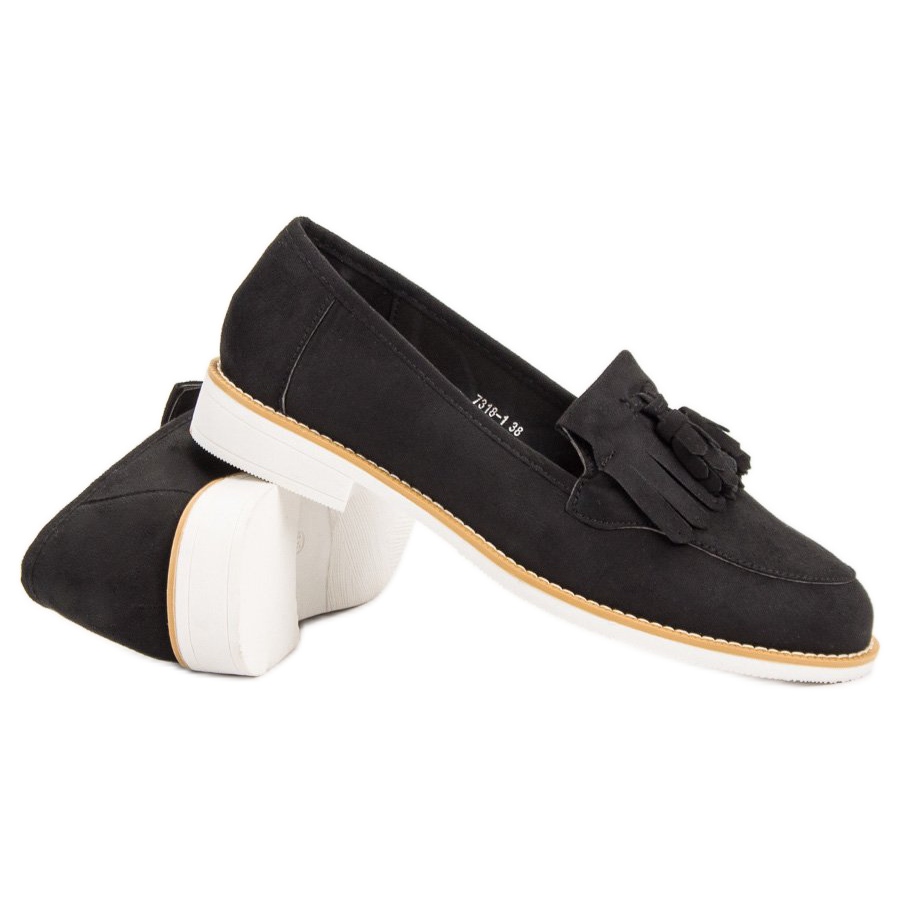 En bekväm slip-on-knäppning och en inbyggd, mjuk häl garanterar komfort att bära, och den 2-centimeters plattformen gör dem perfekta för vardagsbruk och för kvällsutflykter. Den runda tån och fransarna är ytterligare accenter som lockar uppmärksamhet och lägger till originalitet till skorna.