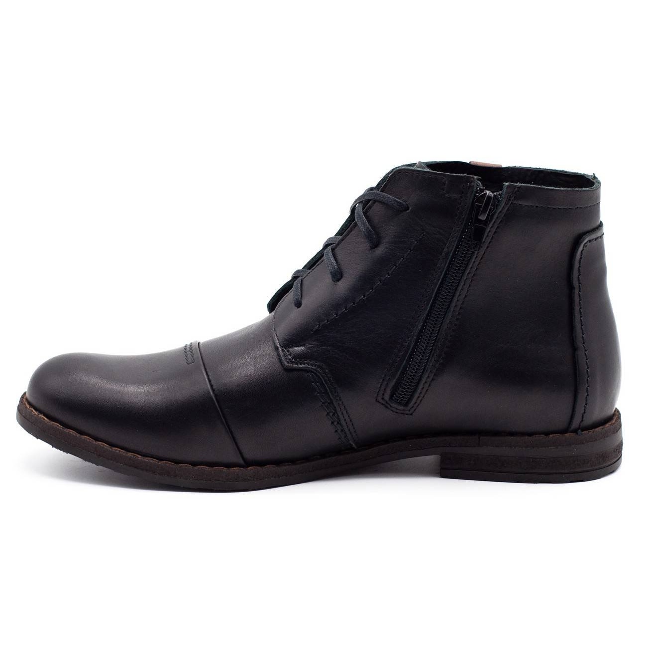 Solid, svarta 315J -stövlar är skor som kommer att fungera både för vardagliga, urban användning och vid något mer formella tillfällen. Naturligt yttre läder garanterar hållbarhet och estetiskt utseende, och isolering ger skydd mot förkylning. Kombinationen av snörning och ett sidoslås ger dig möjligheten till exakt passform och snabbt tar på dig och tar fart.