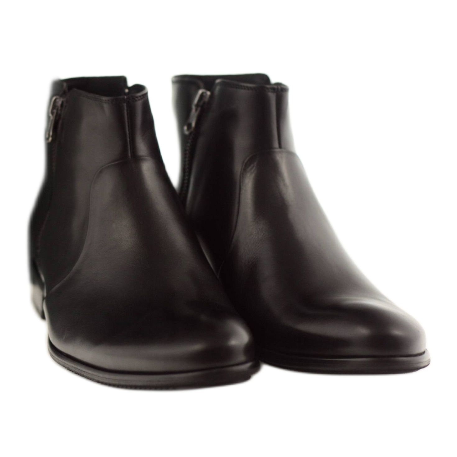 Dessa svarta stövlar är gjorda av naturligt narvläder, vilket säkerställer inte bara ett estetiskt utseende, utan också långvarig hållbarhet. Isolering gjord av tätt fleecetyg garanterar termisk komfort, även under de kallaste dagarna. Dessutom, dragkedjor på båda sidor gör att du enkelt kan ta av och på skorna, vilket är extremt praktiskt i vardagsbruk.