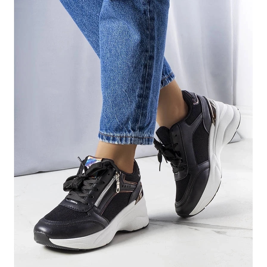 Svarta sneakers för Stacey -kilar från D/GMR är det perfekta valet för kvinnor som värderar både komfort och fashionabla utseende. Dessa snygga skor betonar perfekt figuren tack vare vilken de kan ge förtroende för varje situation. Tillverkade av högkvalitativt tyg, följer de perfekt mot foten och säkerställer komfort hela dagen.