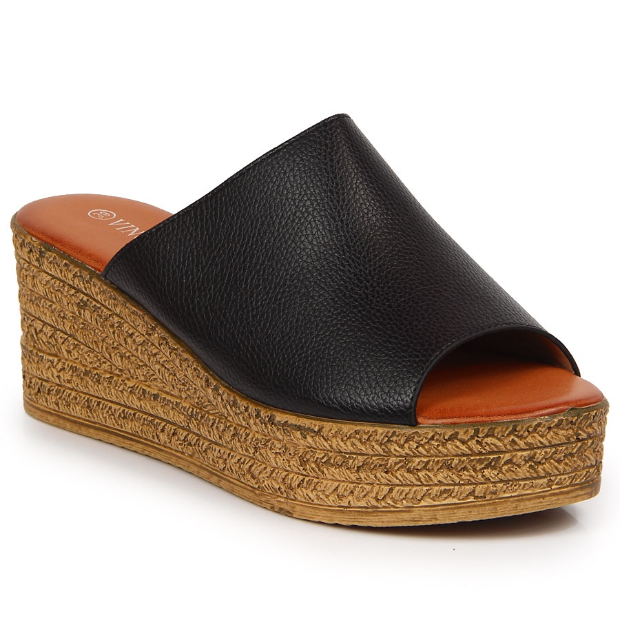 Information: Svarta wedge tofflor för kvinnor Vinceza