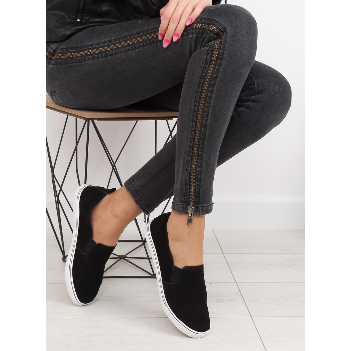 Detaljer: Svarta XL07P Svarta slipony sneakers