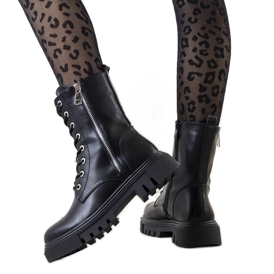 Denna modell har en platt klack med en höjd på 4,5 cm, vilket garanterar komfort att bära under lång tid. Dragkedjan och snörningen möjliggör en perfekt passform till foten, och den runda tån gör skorna inte bara estetiska utan också praktiska.