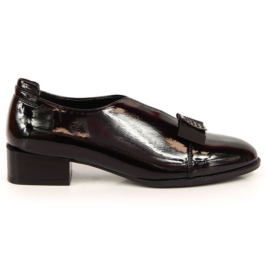 Ovandeln i lackläder väcker inte bara uppmärksamhet med sin glans, utan är också extremt lättskött. Interiören gjord av naturligt läder säkerställer bärkomfort, och innersulan gjord av högkvalitativt material tar hand om dina fötters hälsa och gör att de kan andas.