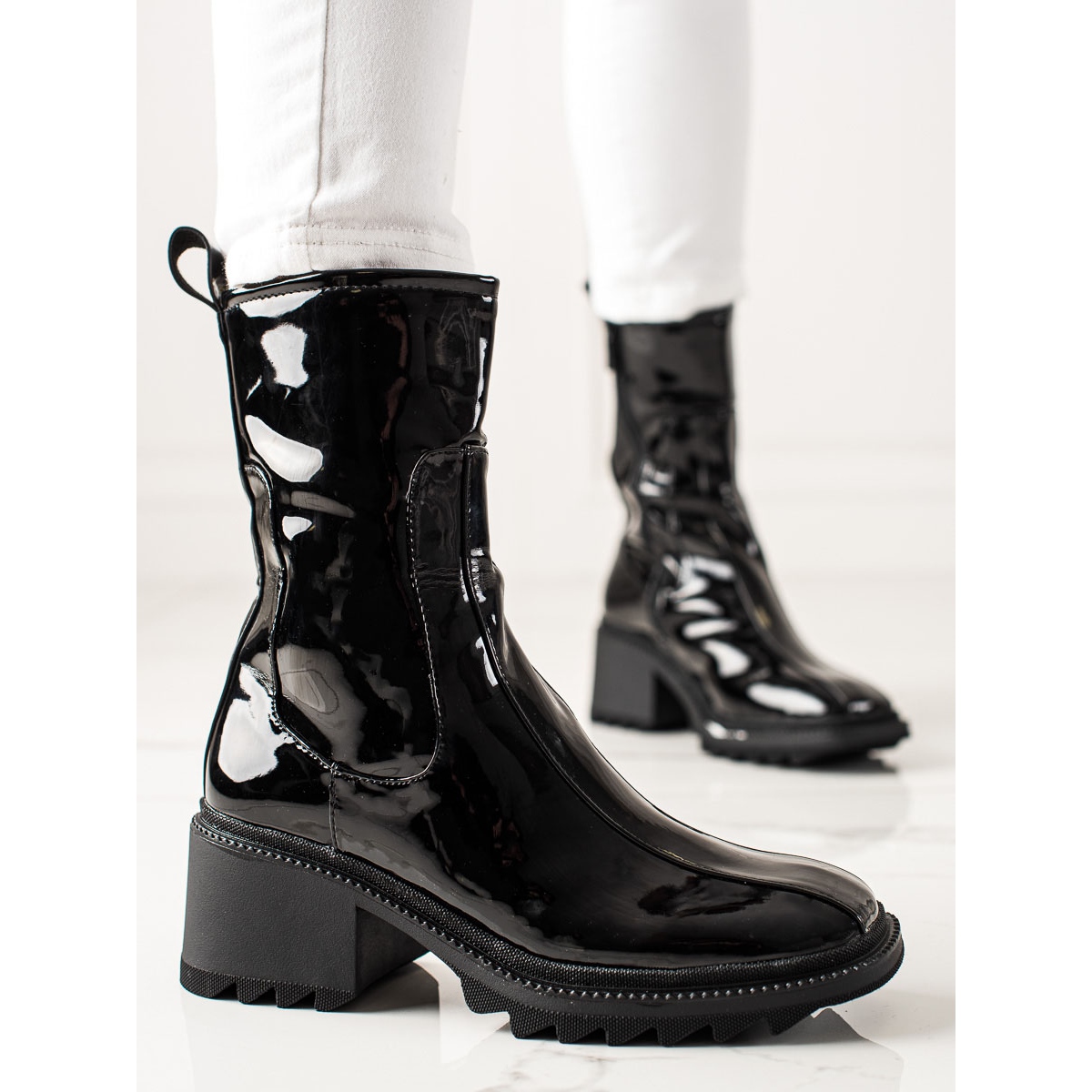 Den praktiska dragkedjan gör det lättare att ta av och på skorna. Ytterligare funktioner, som den lackerade beläggningen, ger dem en elegant karaktär som säkert kommer att dra till sig uppmärksamhet.
