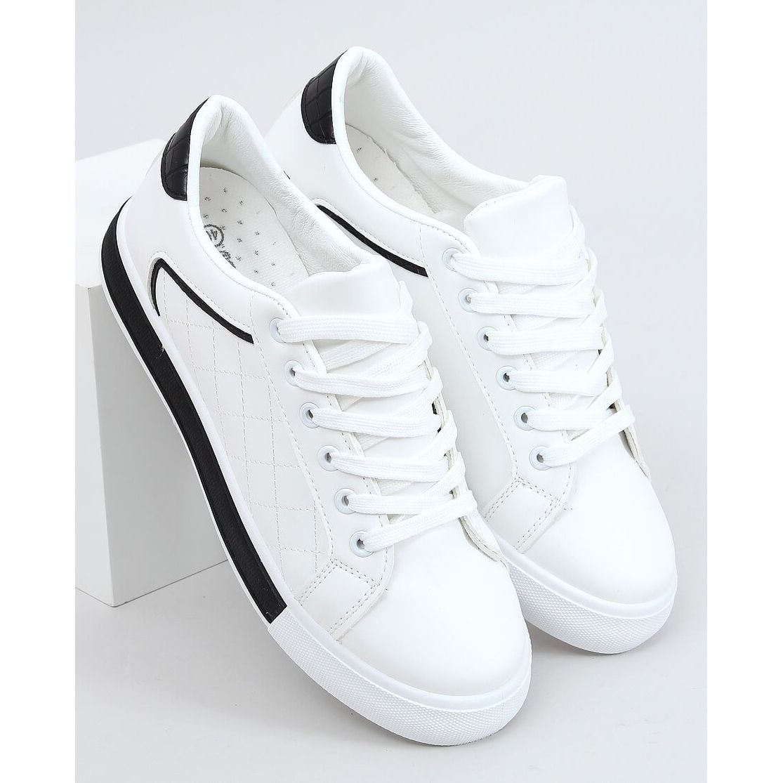 Låt dig inspireras av deras unika utseende! Ett subtilt, quiltat mönster och en karakteristisk ormskinnsinsats på baksidan av skon ger dem originalitet och gör dem till ett perfekt komplement till alla stylingar. Vita och svarta färger matchar perfekt med alla garderobselement, och deras låga höjd gör att du kan röra dig fritt hela dagen.