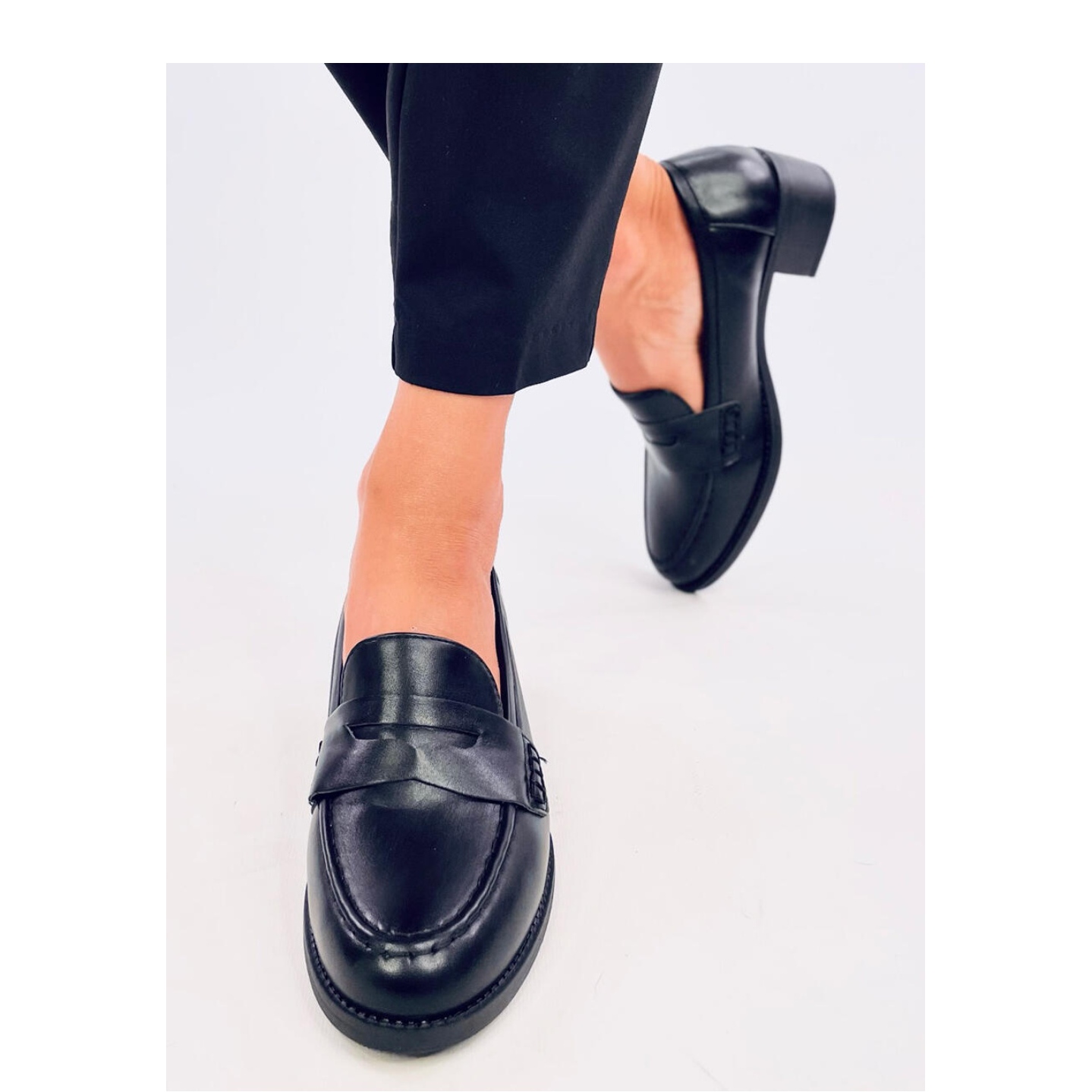 Pumparna har 4,5 cm höga hälnivåer, vilket säkerställer stabilitet vid varje steg, utan att ge upp ett attraktivt utseende. Deras designer sömnad, inspirerad av mockasiner, ger dem en unik karaktär, vilket gör dem till det perfekta valet för många tillfällen - både för arbete och för sociala sammankomster.