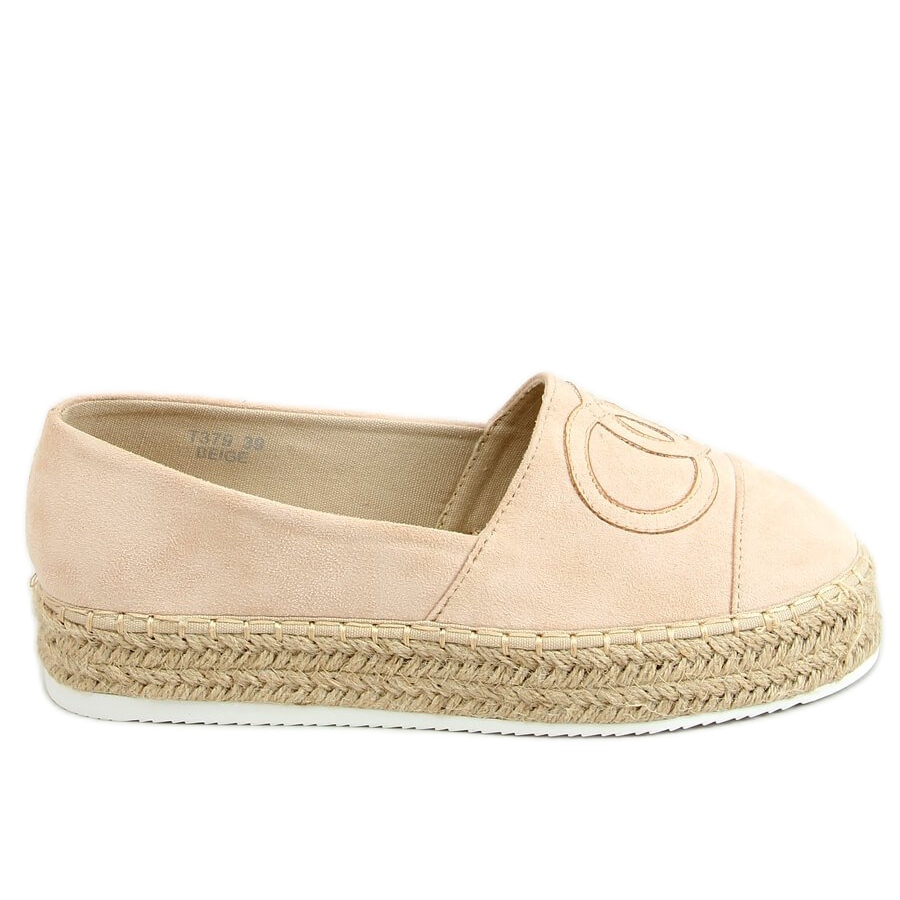 T379P espadrillor är plattklackade skor med rund tå, vilket garanterar vardagskomfort. Dessutom gör deras universella beige färg att de matchar många olika outfits, och deras släta mönster gör att de enkelt kan kombineras med andra klädesplagg.