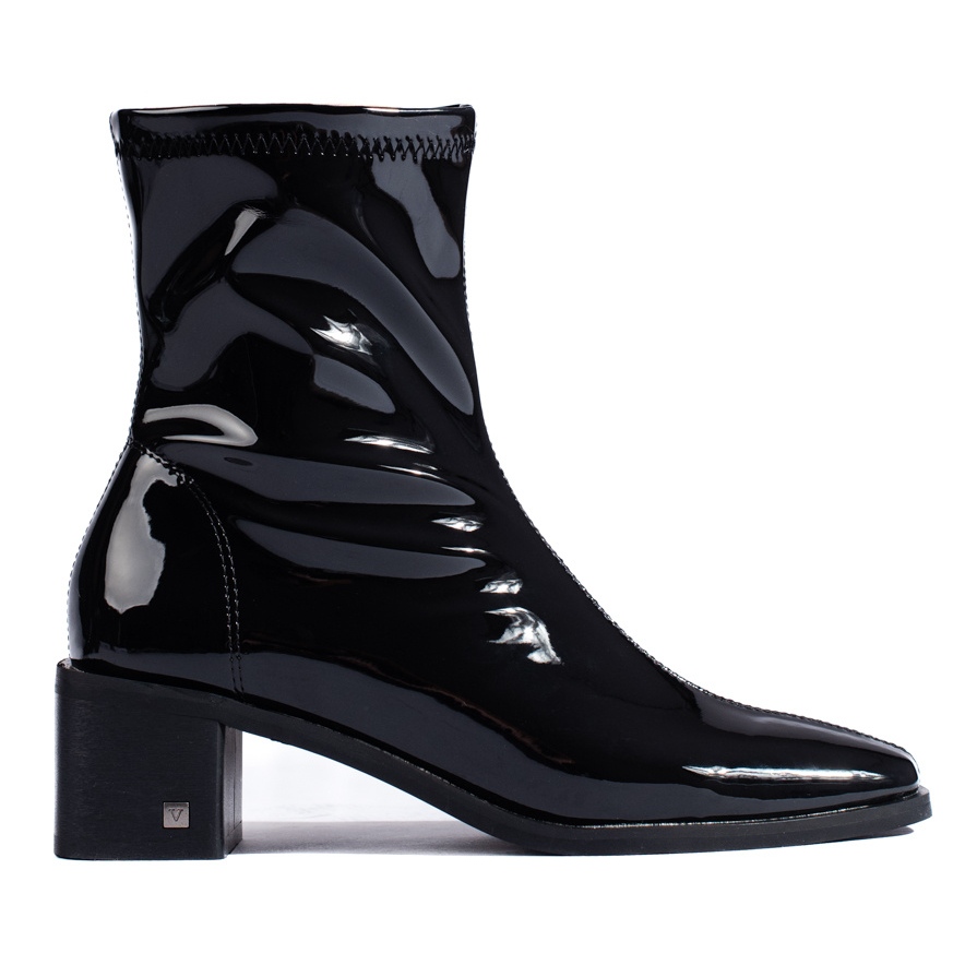 Detaljer: Tätade damstövlar gjorda av Vinceza lack svart