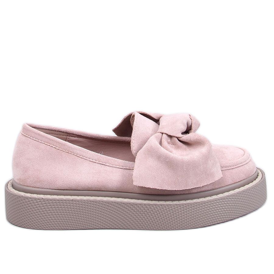 Upptäck den unika modellen av mocka mockasiner med en Tempelton -båge i en vacker rosa färg som perfekt passar in i de senaste trenderna! Dessa snygga plattformsskor kommer säkert att bli ett favoritelement i din garderob under hösten. Deras eleganta utseende, framhävd med en charmig båge på framsidan, fångar ögat och lägger stil till alla styling.